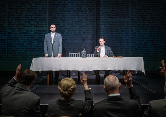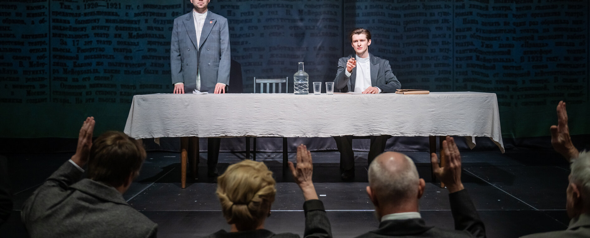 Спектакль приурочен к 150-летию со дня рождения великого режиссёра и реформатора театра Вс. Э. Мейерхольда. Текст постановки основан на стенограмме общего собрания коллектива ГосТИМа в декабре 1937 года по следам статьи П.М. Керженцева «Чужой театр», опубликованной в газете «Правда».