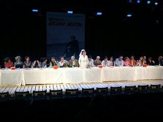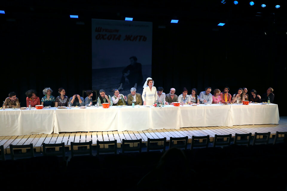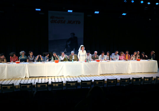 На большой сцене театра герои избранных рассказов Шукшина поют и трудятся, пьют, пляшут, любят, дышат, живут под одним общим небом...