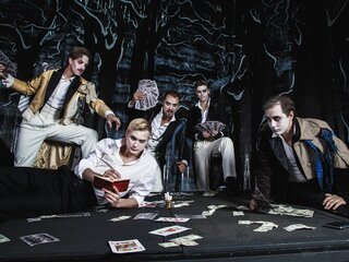 И на какие шаги готов пойти ради этого человек? В спектакле сам Пушкин наравне с Германом становится одним из игроков, пытающимся разгадать возможности неограниченного успеха.