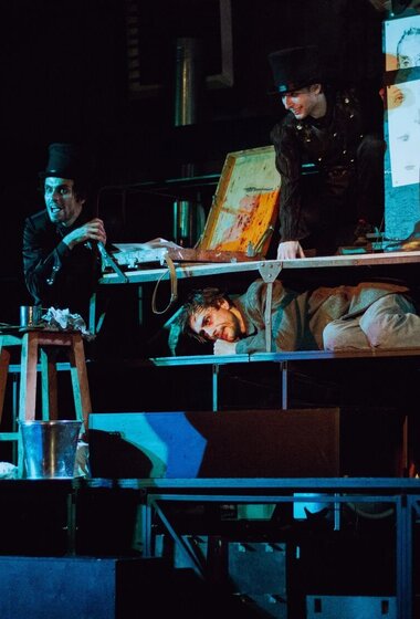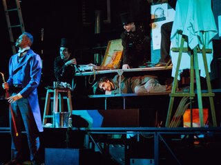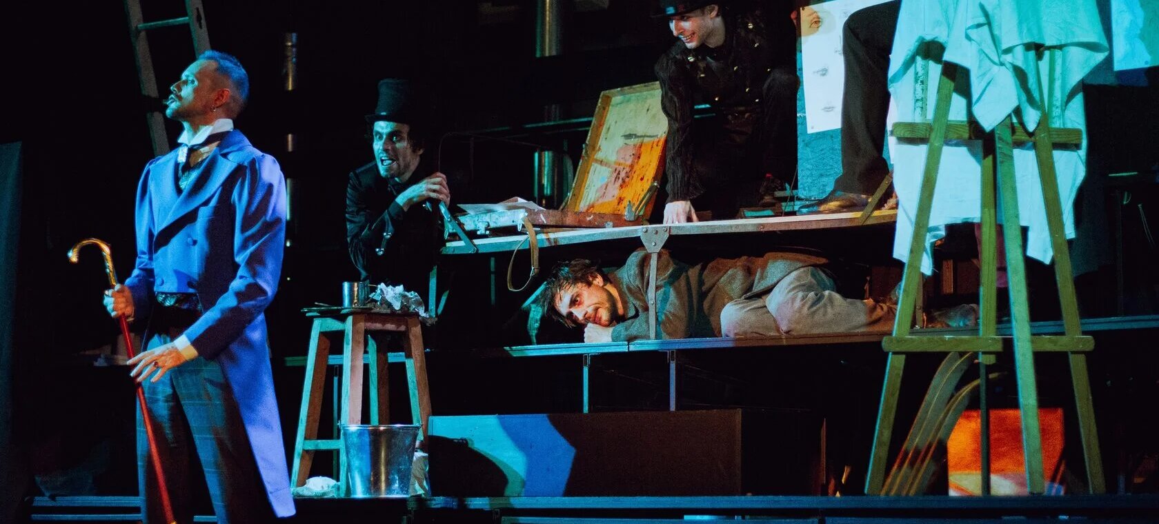 Театр завершает свою гоголевскую трилогию спектаклем «Портрет» — историей талантливого художника Чарткова, волею случая (случая ли?) приобретающего в лавке портрет старика-ростовщика. Портрет написан с необычайным мастерством — кажется, старик смотрит живым, пронзительным взглядом и видит Чарткова насквозь: видит, что тот беден и находится на грани отчаяния от существования в нищете, видит невероятный талант Чарткова и красоту его работ, видит даже его надежды и мечты... Или то уже не старик, а сам дьявол, увидевший достойную добычу, смотрит с картины и предлагает Чарткову помощь?