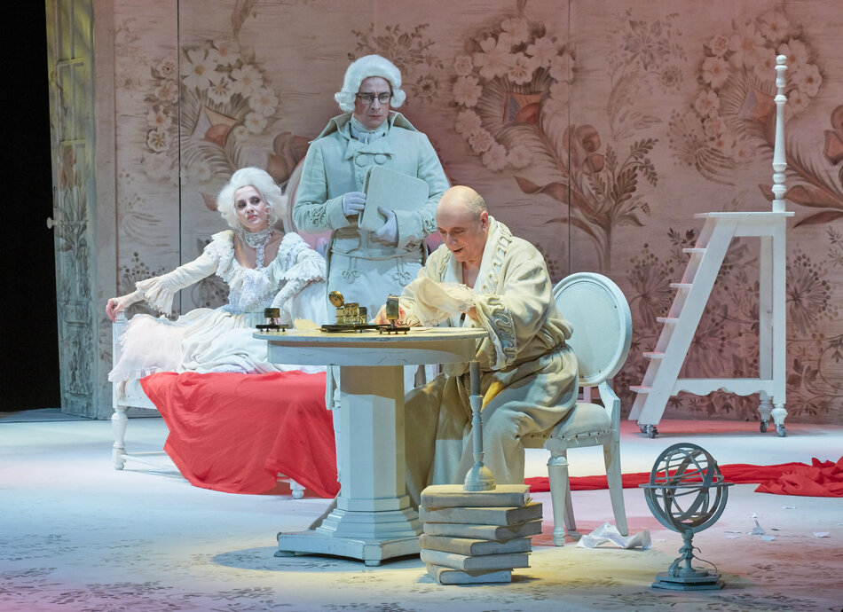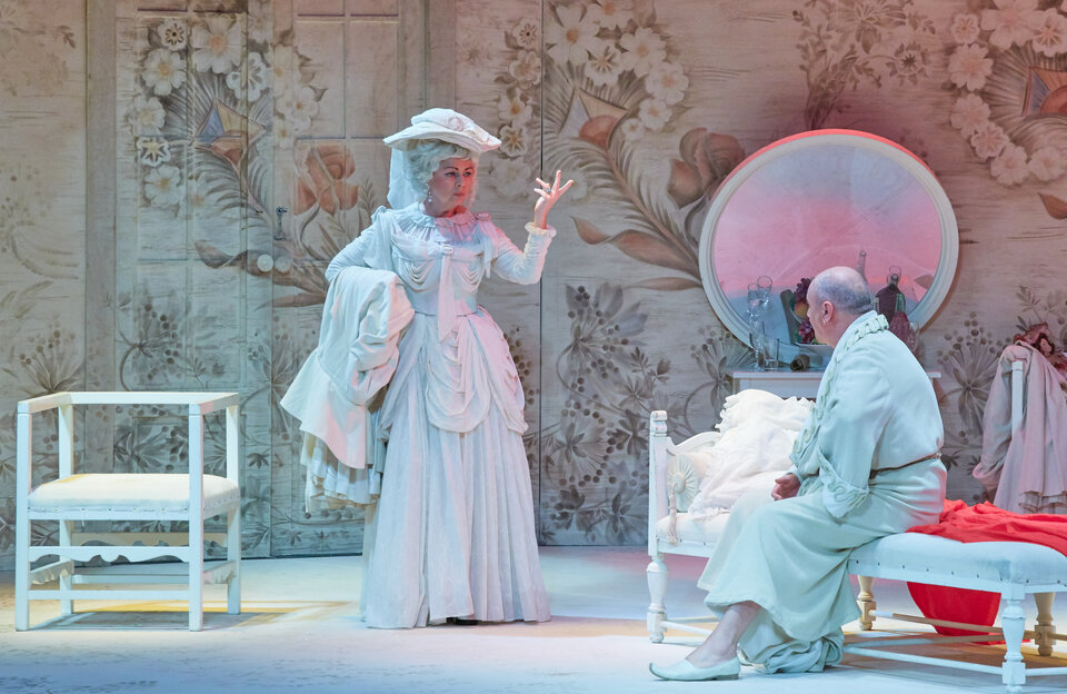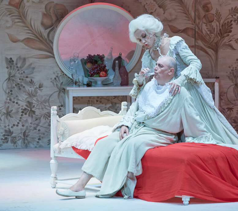 Сценическое пространство, создающее одновременно ощущение затейливой шкатулки, хитроумной ловушки и «ящика Пандоры» подарил спектаклю заслуженный художник РФ, лауреат Высшей театральной премии Санкт-Петербурга «Золотой Софит» Владимир Фирер. Роскошные монохромные костюмы, рождённые фантазией Фирера, словно обнажают героев, которые предстают перед зрителем в очаровательной наготе своих страстей и пороков.