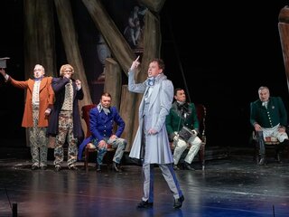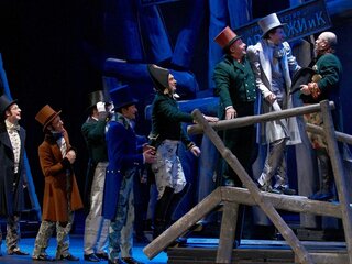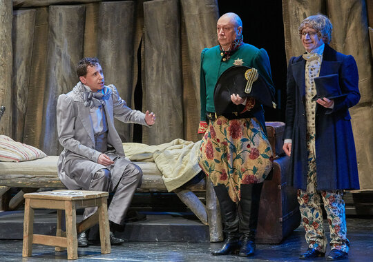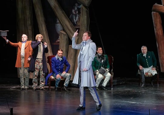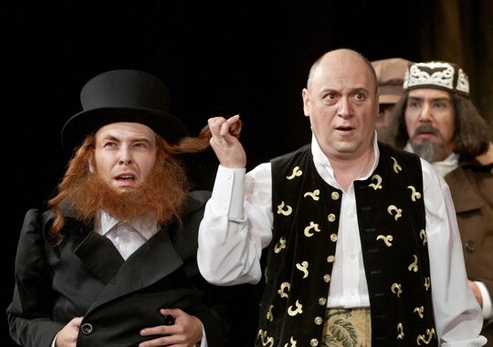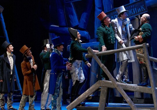 Принимаясь за постановку стопроцентной классики, каждый режиссёр оказывается в поиске точного стиля и формы. Создатель спектакля «Ревизор» народный артист РФ Исаак Штокбант, бережно сохраняя авторский слог, решил прибегнуть к излюбленным приёмам буффонады и гротеска и предложил зрителям комическую, нарочито карикатурную версию. Его уездные чиновники расхаживают в строгих мундирах и сюртуках в сочетании с праздного вида панталонами «в цветочек». Главный герой ставит на уши весь городишко и так входит в раж, что умудряется наломать не просто дров, а буквально брёвен, принимающих вид гигантской подвижной декорации. А музыка великого Шостаковича вкупе с гениальным текстом Гоголя поднимает провинциальный анекдот до уровня абсолютного фарса.