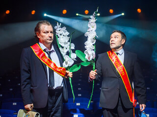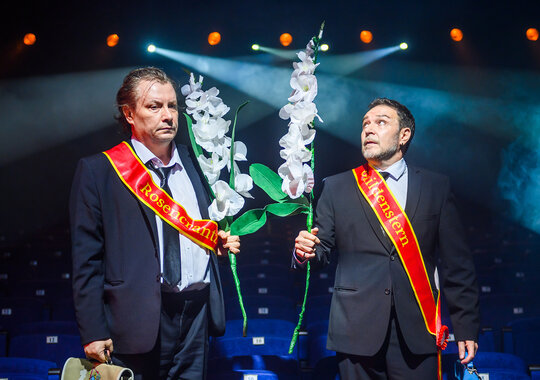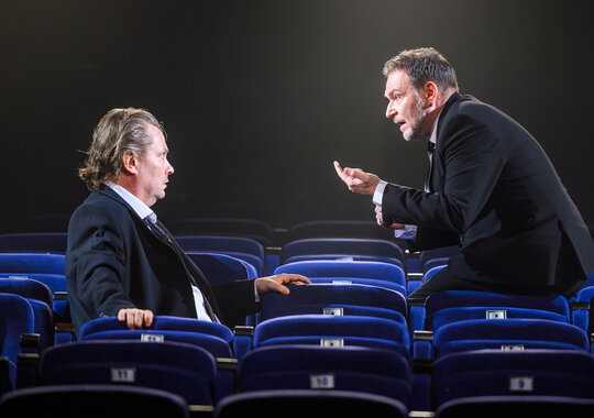 В спектакле Галины Зальцман, который станет уже третьей постановкой режиссёра в Театре на Васильевском, Розенкранц и Гильденстерн — современные обыватели, втянутые в молниеносно закручивающуюся воронку обстоятельств не по своей воле и пытающиеся тщетно найти выход из театра шекспировских страстей.