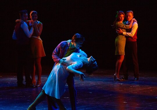 Мюзикл «С любимыми не расставайтесь» поставлен по мотивам пьесы Александра Володина. И несмотря на то, что в 2019 году исполнилось 100 лет со дня рождения этого выдающегося драматурга, музыкальный спектакль театра «Буфф» — про молодых и для молодых. И все роли в нём исполняют самые молодые артисты театра, уже знакомые зрителям по спектаклю «Маленькие истории Большого города».