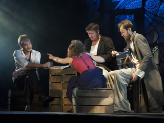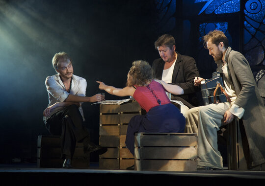 «На дне» – самая известная пьеса Горького. В интерпретации з. д. и. России Юрия Томошевского она еще и актуальная. Режиссер увидел в пьесе универсальный сюжет, который может повториться и в наши дни. Но название спектакля – «Шестикрылый серафим», подсказанное пушкинским «Пророком», говорит о большем. Оформление сцены, придуманное великолепным мастером Ириной Михайловной Бируля, – ажурное, прозрачное, светящееся, – если присмотреться, состоит из разбитых оконных рам и осколков «стекла». И все же над ним парит ангел. Высвеченный лучом света, он осеняет это сотканное из воздуха пространство. Актеры драматической труппы филармонии стремятся согреть метафорическое «дно» своим дыханием, заполнить живой жизнью. В ткань спектакля органично входят развернутые пластические картины, поставленные молодым талантливым хореографом Ириной Ляховской. Они наполняют спектакль не бытовым, но бытийным смыслом, заставляют сострадать и любить не только людей, живущих «без солнца», но людей как таковых.