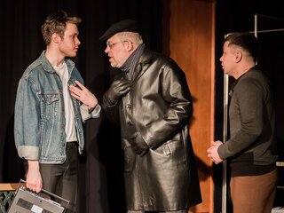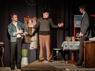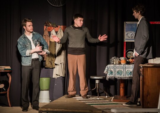 Спектакль «Старший сын» — рассказ о семье, дружбе, долге, любви. Два приятеля опоздали на электричку. Девушки, которых они отправились отважно провожать, прокрутили им динамо. Весна. Поздно. Холодно. Молодые люди, находясь в безвыходном положении, решают попроситься на ночлег в первый попавшийся дом. Дверь открывает младший сын Андрея Сарафанова — Васенька. Друзья смело заявляют, что один из них внебрачный сын хозяина дома... Чудо — их слова оказались правдой.
