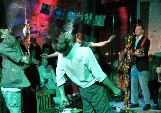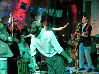Ведь всё происходит на своего рода коммунальной кухне: как водится — у каждого свой стол и комфорка. И каждый сможет помочь последним приготовлениям к празднику — нарезать колбасу, открыть шпроты или трёхлитровую банку берёзового сока.