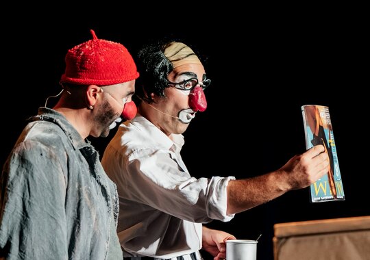 Двое клоунов пытаются понять: кто главный, кто настоящий и кто первый начал шуметь. Они стараются держать себя в руках, но всё вокруг выходит из-под контроля. И только вам покажется, что всё успокоилось... Вы услышите слово «тихо!». И с этого всё начнётся заново. Потому что в этом спектакле тишина — это самое громкое слово!
