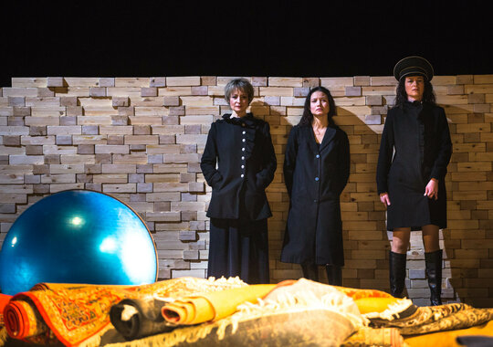 Спектакль Юрия Бутусова, впрочем, как все его спектакли, далёк от желания соответствовать эпохе создания пьесы и вообще привязываться к каким бы то ни было ориентирам во времени и пространстве. Самым важным для режиссёра является необходимость найти точное визуальное и сценическое воплощение тех идей, которые заключает в себе драматургическое произведение. Даже следуя последовательности событий, изложенной автором (в отличие, например, от его же спектакля «Макбет. Кино» по Шекспиру), Бутусов умудряется настолько преобразовать литературный материал, что порой можно и не поверить: неужели этот спектакль, со всеми этими голубыми шарами, советскими коврами, ирокезами, автоматами, огромными куклами и видеоокошком с бесконечной проекцией вида из окна мчащегося поезда — постановка по пьесе Чехова?