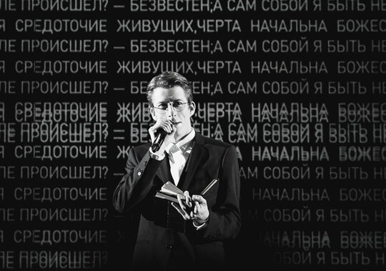 Режиссёр Никита Кобелев: «На мой взгляд, в этой пьесе есть столкновение очень важного для российской ментальности литературного классического канона и того, как он работает сегодня, с тем цинизмом и аморальностью персонажей пьесы, которые этим самым каноном оправдывают свои действия. Меня интересует насколько классика нас действительно защищает и спасает сегодня или она стала лишь орудием для разного рода манипуляций».