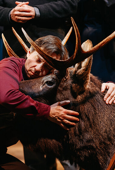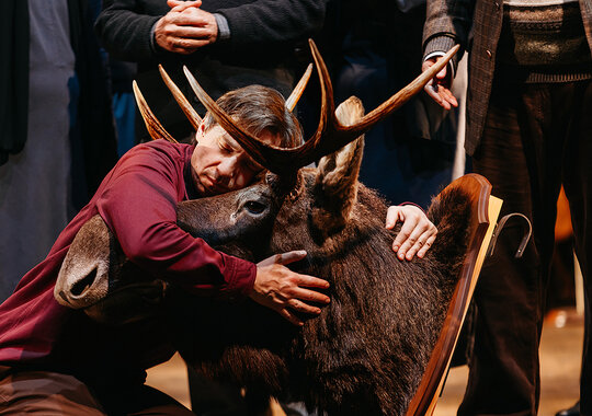 Репетируя спектакль, мы все вместе интуитивно, не сговариваясь, стали вспоминать своих родителей и своё детство, каждый — что-то своё. Помимо чего-то личного мы вспоминали пьесу «Утиная охота» и её постановки, вспоминали фильм — это важная часть спектакля, потому что мы никуда от этого не денемся. И Зилов в нашем пространстве собирательный, он состоит из осколков, такой немножко Франкенштейн. Он вспоминает свою жизнь — и предыдущих Зиловых, и это тоже важно».