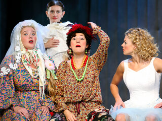 На большой сцене театра гоголевские страсти. Спектакль — инсценировка ироничной и колкой пьесы Николая Васильевича Гоголя «Женитьба».