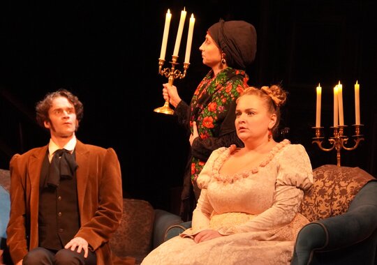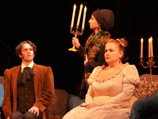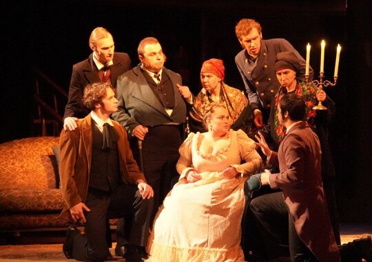 В спектакле достоверно отражена эпоха, костюмы, сохранен неповторимый язык Гоголя, где причудливо и парадоксально сочетается комическое и трагическое, где каждое слово звучит современно.