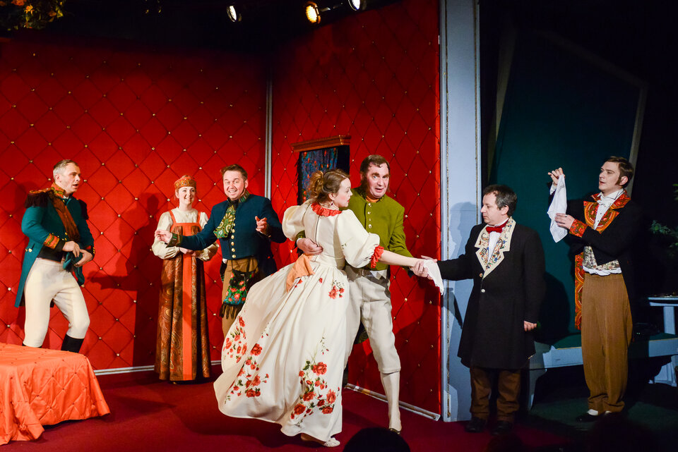 «Если бы губы Никанора Ивановича да приставить к носу Ивана Кузьмича, да взять сколько-нибудь развязности, какая у Балтазара Балтазарыча, да, пожалуй, прибавить к этому еще дородности Ивана Павловича...» — эх, вот бы вышел муж для купеческой дочки Агафьи Тихоновны. Все женихи — как на подбор. Один — моряк, другой — отставной офицер, третий, страшно подумать — экзекутор! Выбор невесты, в конце концов, падает на надворного советника Подколесина, который, в свою очередь, тоже терзается неразрешимыми сомнениями... холостяцкая свобода или полный дом маленьких кричащих Подколесиных. Внимательное и любовное отношение к классике в сочетании с острым ощущением современности дает неожиданный результат. Сценическая версия пьесы, предложенная режиссером, была названа «самой поэтической «Женитьбой» в Петербурге.