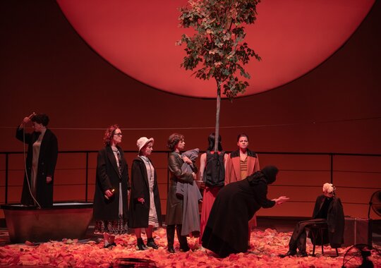 Постановка Галины Полищук, основанная на книге Захара Прилепина, погружает зрителей в мир знаменитого поэта, позволяет посмотреть на его жизнь глазами женщин, любивших его и повлиявших на его творчество. Историю взаимоотношений Сергея Есенина и его возлюбленных представят зрителям звёзды театра и кино, среди которых Екатерина Стриженова, Алиса Гребенщикова, Екатерина Волкова, Агния Кузнецова.