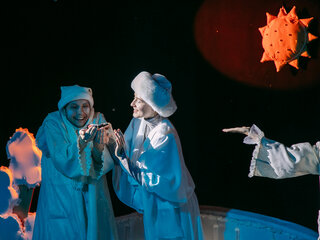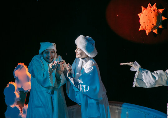 Спектакль полностью интерактивный, дети принимают участие во всех зимних забавах вместе с Зимой и ее смешными помощниками.