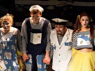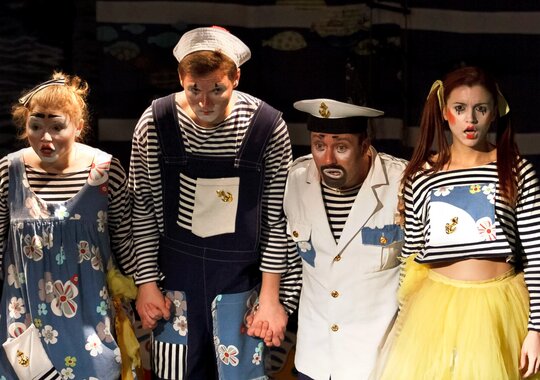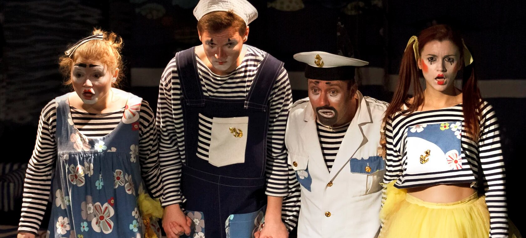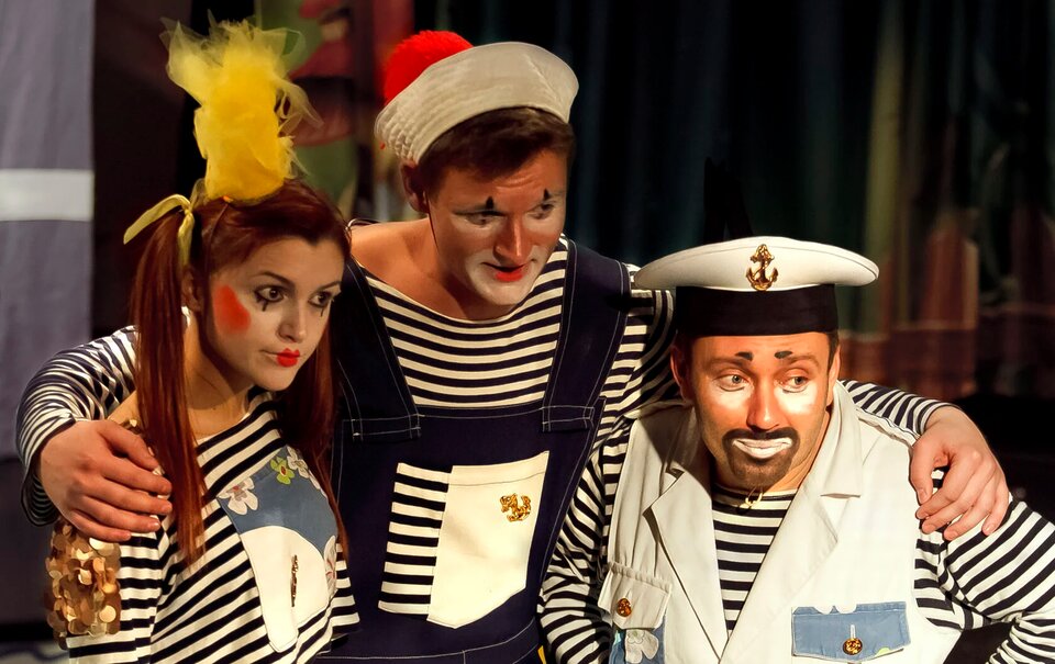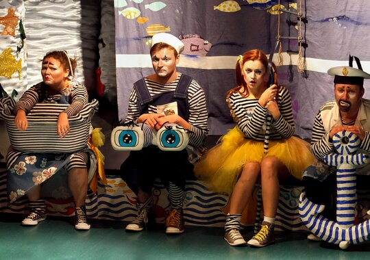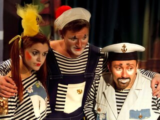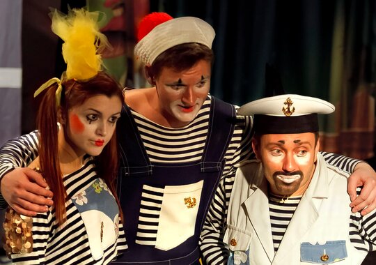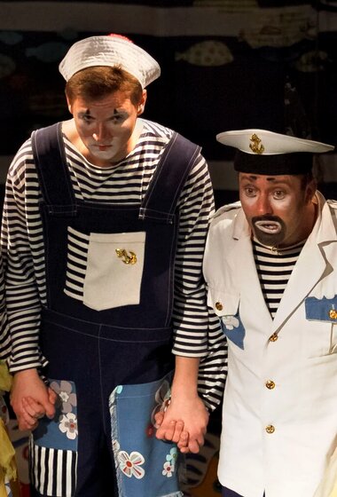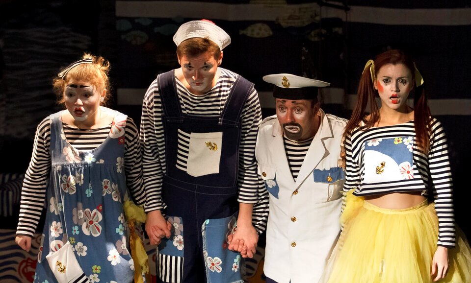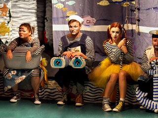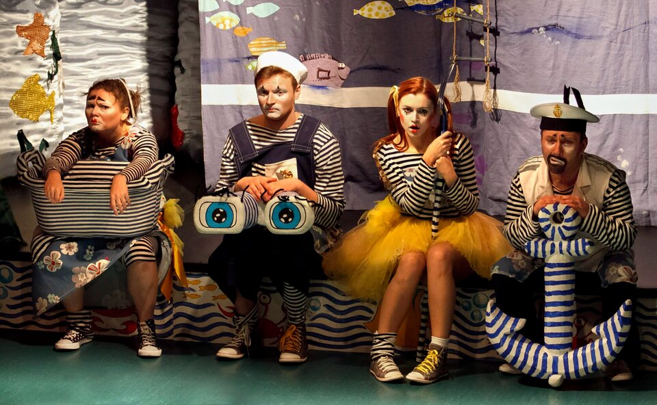 Импровизация по мотивам сказки А. С. Пушкина «Сказка о рыбаке и рыбке». Наша постановка — это не просто история о старухе и владычице морской. Это настоящее морское приключение! Поплывут на импровизированном корабле не матросы, а клоуны. Их номера ставил художественный руководитель театра клоунады «Лицедеи» Леонид Лейкин. Оригинальные костюмы, танцевальные номера, «морские декорации» и веселые игры ждут вас! Билет необходимо приобретать для каждого зрителя, старше 2-х лет. Рассадка в зале свободная, детки садятся вперёд, родители за ними. Детям желательно взять сменную обувь.