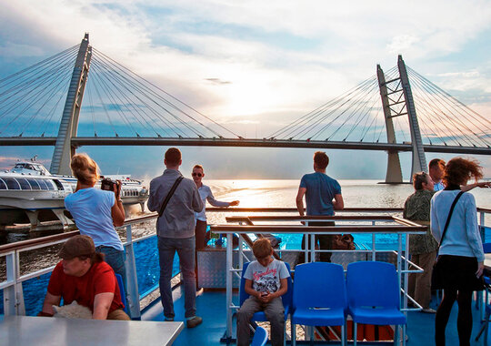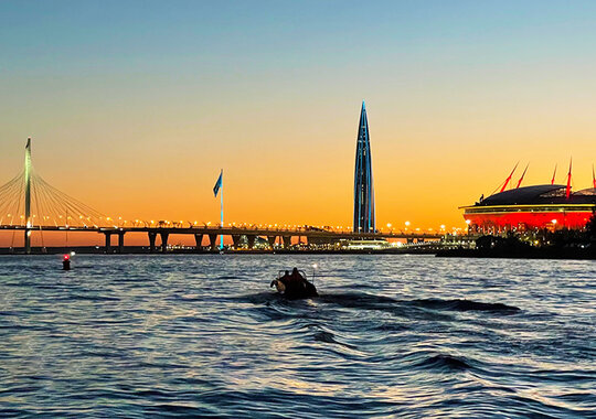 Маршрут начинается с обзора исторического центра Града на Неве: вы увидите Адмиралтейство, Эрмитаж, Ростральные колонны, Петропавловскую крепость, Летний Сад и Крейсер «Аврора». Вторая часть маршрута проведёт вас в Финский залив к Морскому фасаду града-мегаполиса с современной футуристической архитектурой и вантовыми мостами, мимо стадиона «Газпром Арена» и самого высокого в Европе небоскрёба «Лахта-центр».