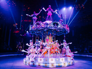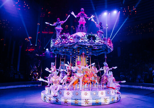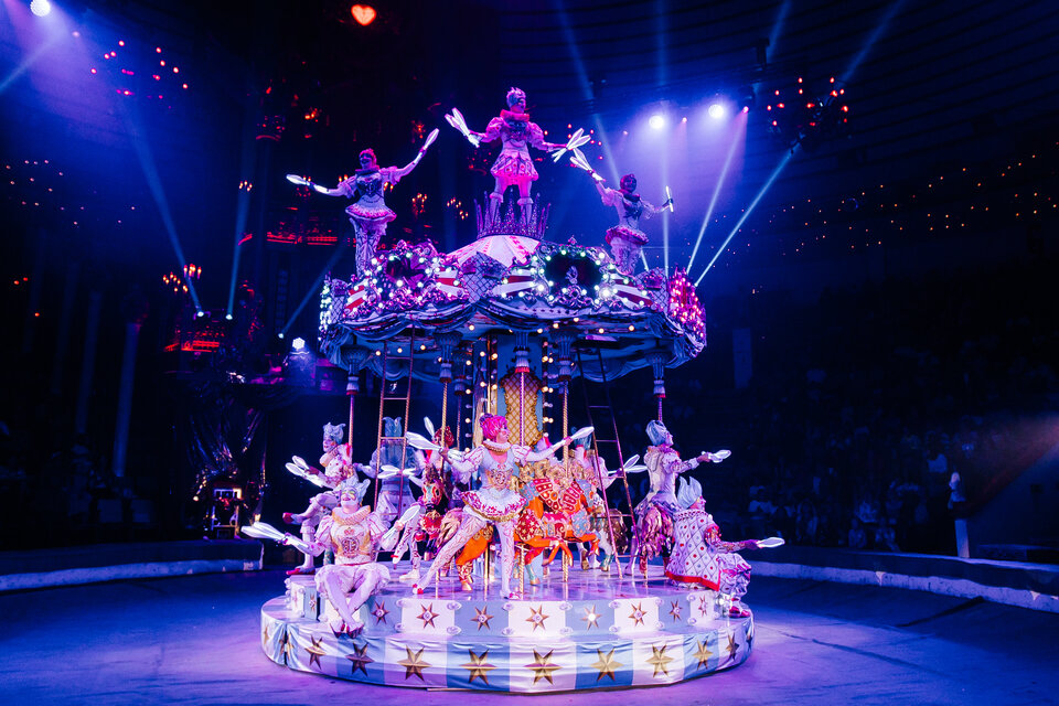 Поражает сама идея — где все в шоу гармонично сплетено воедино: более 2000 эксклюзивных костюмов, хрустальные люстры, мраморные колонны, стразы, перья. Для спектакля был спроектирован огромный золотой Замок, возвышающийся под самый купол цирка, декорированный бархатом и кристаллами Swarovski. В сочетании с авторской музыкой, профессиональным сценическим светом — все это помогает воссоздать атмосферу настоящего королевского дворца, где и разворачивается основное действие, в котором более 100 артистов в течение почти 3-х часов за одно шоу меняют свои амплуа.