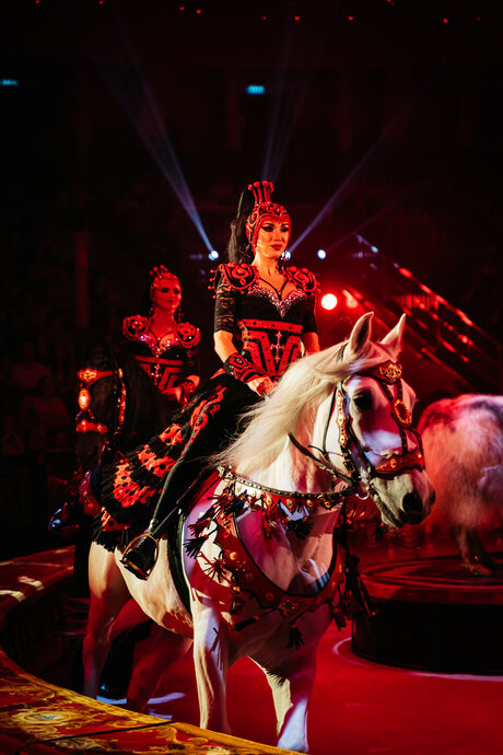 Заслуженный артист России Гия Эрадзе славится неординарным подходом к цирковому искусству. Его представления — это всегда синтез эстрады, цирка и мюзикла. Каждое действие на манеже — это мини-спектакль, в котором гармонично сочетаются сложнейшие трюки, дрессура животных, невероятные образы артистов, авторская музыка и декорации, профессиональное световое оформление и спец. эффекты, необычный реквизит и эксклюзивные роскошные костюмы. Изюминкой шоу станет масштабный аттракцион «Дикий мир» под руководством обладательницы международного титула «Принцесса цирка» Людмилы Сурковой. На международном фестивале в московском цирке Никулина ее аттракцион с 10-ю тиграми получил гран-при, а также специальный приз от Министерства культуры РФ. Поражает сама идея — где все в шоу гармонично сплетено воедино: более 2000 эксклюзивных костюмов, хрустальные люстры, мраморные колонны, стразы, перья. Для спектакля был спроектирован огромный золотой Замок, возвышающийся под самый купол цирка, декорированный бархатом и кристаллами Swarovski. В сочетании с авторской музыкой, профессиональным сценическим светом — все это помогает воссоздать атмосферу настоящего королевского дворца, где и разворачивается основное действие, в котором более 100 артистов в течение почти 3-х часов за одно шоу меняют свои амплуа. Продолжительность 3 часа, 1 антракт. Дети до 3 лет проходят бесплатно, без предоставления отдельного места и только при предъявлении оригинала свидетельства о рождении. Если ребенку уже исполнилось 3 года — приобретается билет по цене взрослого.