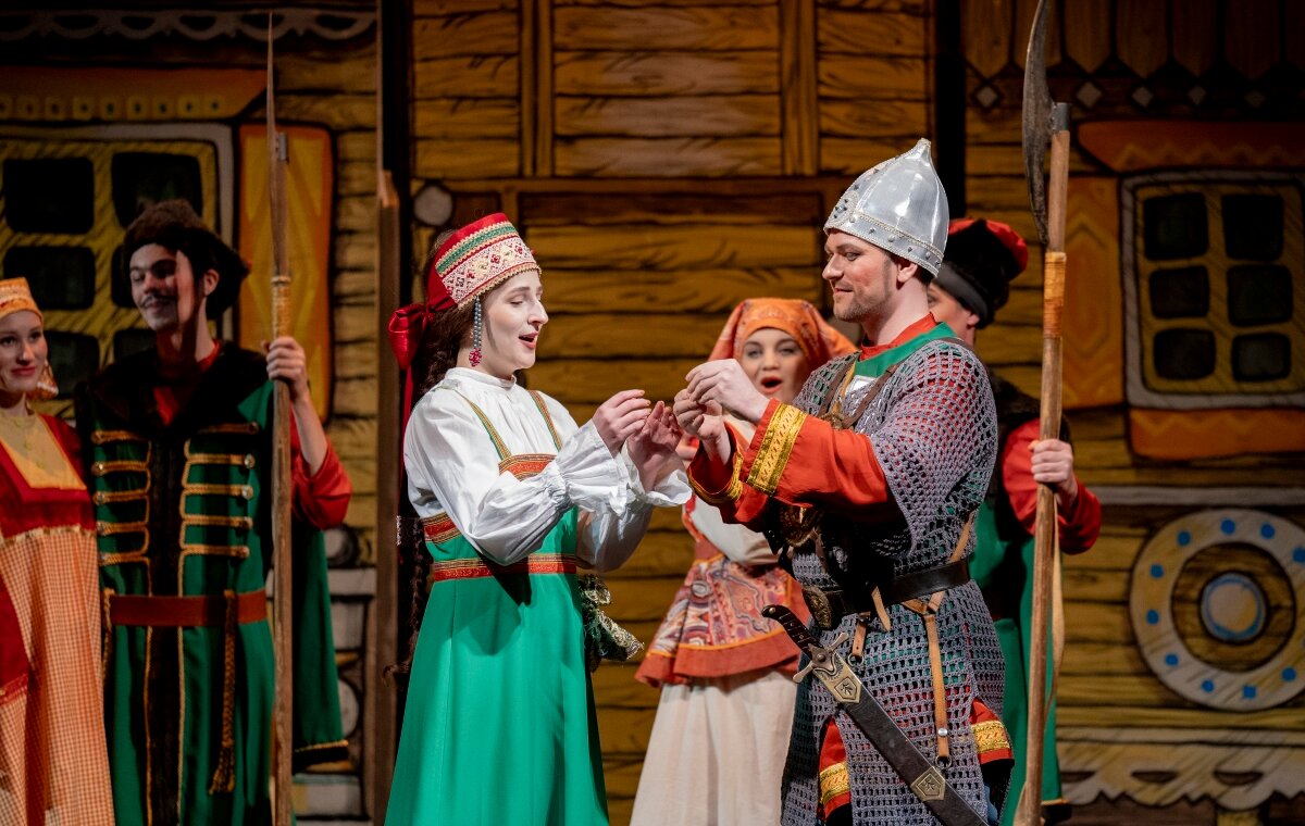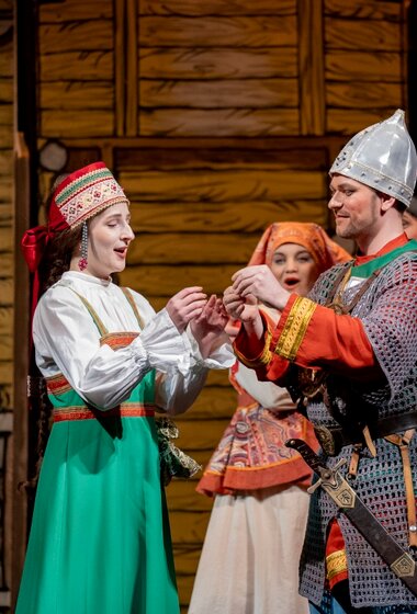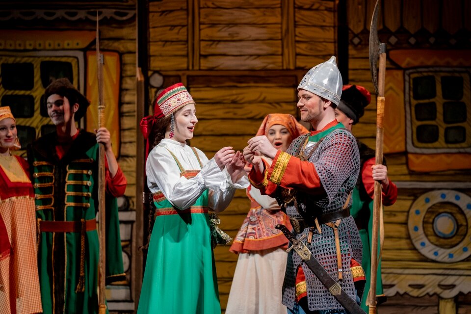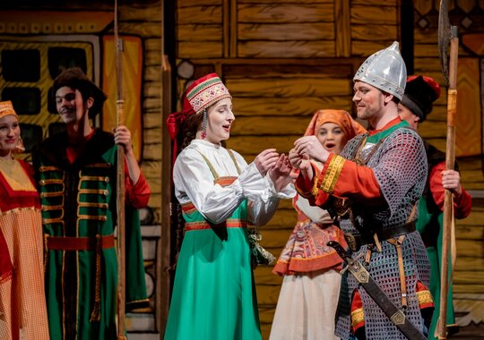 Музыка спектакля очень легкая для восприятия — это мелодичные песни и народная танцевальная музыка. Русские, татарские, чувашские, мордовские интонации и костюмы как яркие ленты вплетены в его художественное оформление.