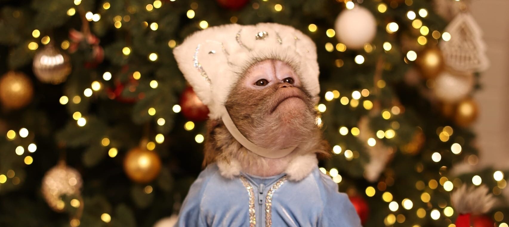 Окунитесь вместе с нами в атмосферу праздника и впервые увидите снегурочку — обезьянку. Чита не просто обезьянка, а она настоящая телезвезда. Эта особа стала главной героиней сериала «Майор и Меймун» (можно посмотреть на «Кинопоиске»)