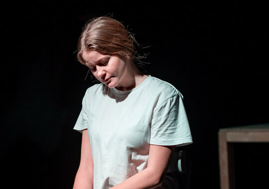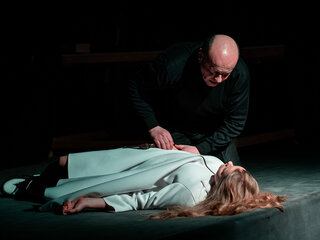 Спектакль «Кроткая» исследует человека и пытается найти ответы на вопросы: «Способен ли человек на такое высокое качество души? Способен ли человек прощать?»