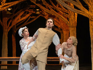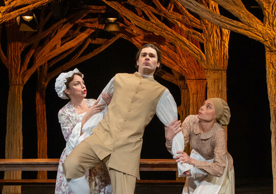 Спектакль «Камерной сцены» — для взрослого зрителя, но он будет интересен и юным. Это веселая комедия, где театр смеется как над пройдохами Простаковыми и Скотиниными, так и над прекраснодушными персонажами, которые верят, что все проблемы легко решить. Это спектакль о России, которую умом не понять, о наших национальных особенностях. Сатира здесь будет соседствовать с доброй улыбкой. Словом — о России с любовью!