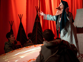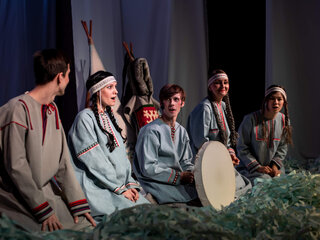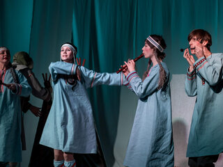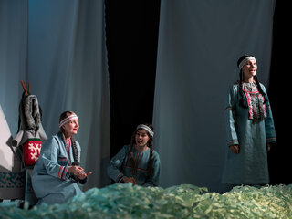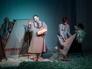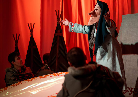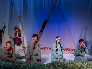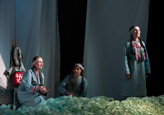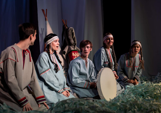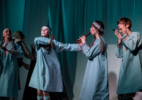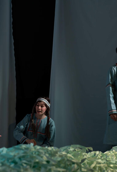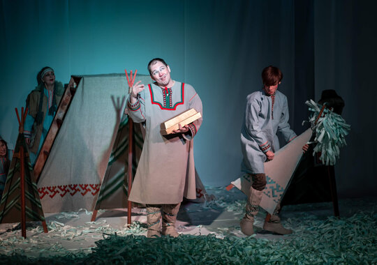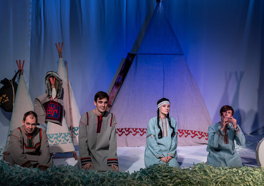 В основе спектакля лежат мансийская сказка «Два охотника» и карельская сказка «Кисель».
