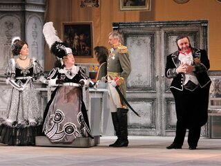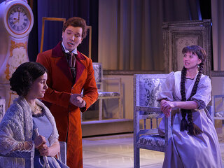 Когда мы слышим «Горе отъ ума » — то всего меньше хочется увидеть «махровую классику», эдакий припорошенный пылью музейный экспонат. И к счастью, режиссёру спектакля Владимиру Буралкину удалось этого избежать. Несмотря на то, что спектакль решен в стилистике своего времени (фраки, платья с рукавом — фонариком, конторка, диванчики, свечи, канделябры), получился он на удивление живым. Даже так, первое, что произносили зрители, выходя из зала: «Как актуально...». Ну что тут скажешь — она потому и классика, что на все времена, а с другой стороны, неожиданно выяснилось, что ничего-то не изменилось за двести лет. И вот оно — «фамусовское общество».