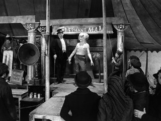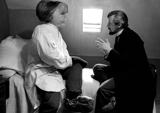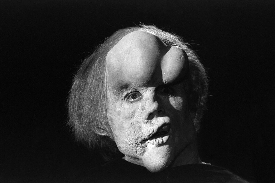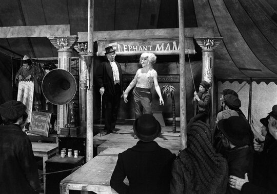 Доктор Тривз находит Джона Меррика в шоу уродцев. Внешность его настолько ужасающая, что ему приходится носить просторное одеяние, чтобы никто не увидел его пугающих наростов по всему телу. Забрав Меррика в больницу после очередного избиения хозяином, Тривз с удивлением обнаруживает в нём человека интеллектуально развитого и духовного.