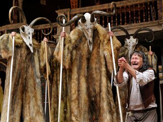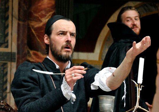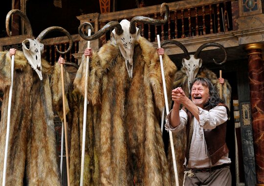 Спектакль в двух действиях с антрактом. Постановка Шекспировского театра «Глобус».
