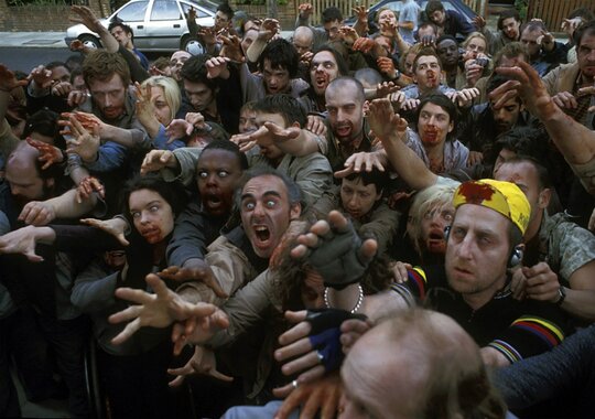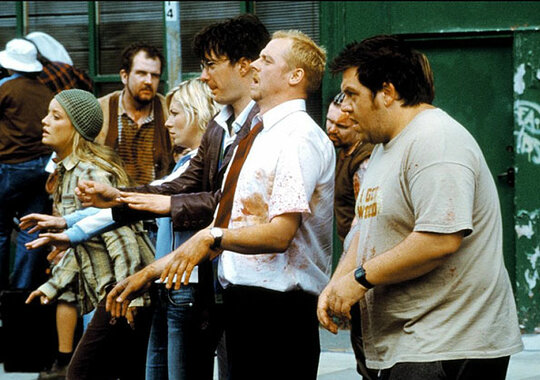 В жизни Шона всё идёт наперекосяк: ему 29 лет, он работает обычным продавцом-консультантом, дома постоянные бытовые разборки с соседями, ещё и подруга даёт от ворот поворот. А тут ещё начинается какая-то странная эпидемия — ожившие и очень голодные трупы начинают бродить по туманному Альбиону в поисках свежей человечинки, по ходу дела превращая граждан в таких же зомби. Шон вместе с другом Эдом вооружаются дубинами и лопатами и выходят на тропу войны.