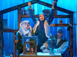 Маленькие зрители могут свободно перемещаться во время спектакля: для них постелены тёплые ковры, и мы просим разуваться перед входом. Для удобства вы можете взять с собой домашние тапочки. Родители могут наблюдать за постановкой, находясь рядом с детьми.