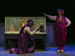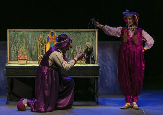 В спектакле использованы штоковые марионетки. На сцене актёры работают в «живом плане». Рекомендуемый возраст – от пяти лет.