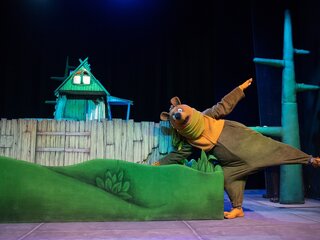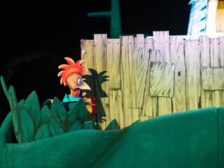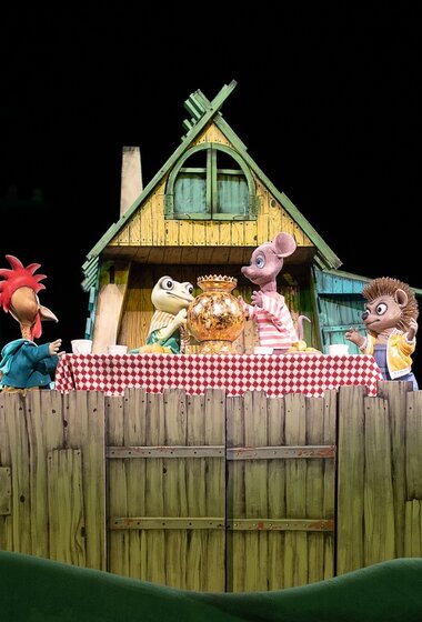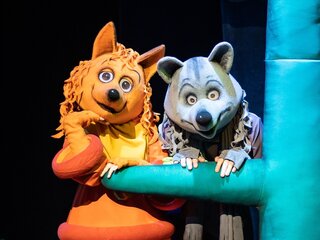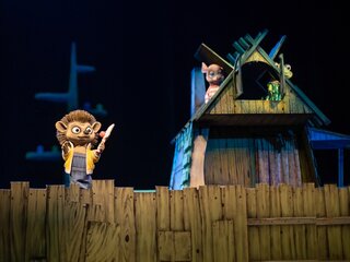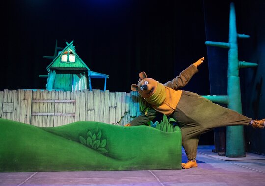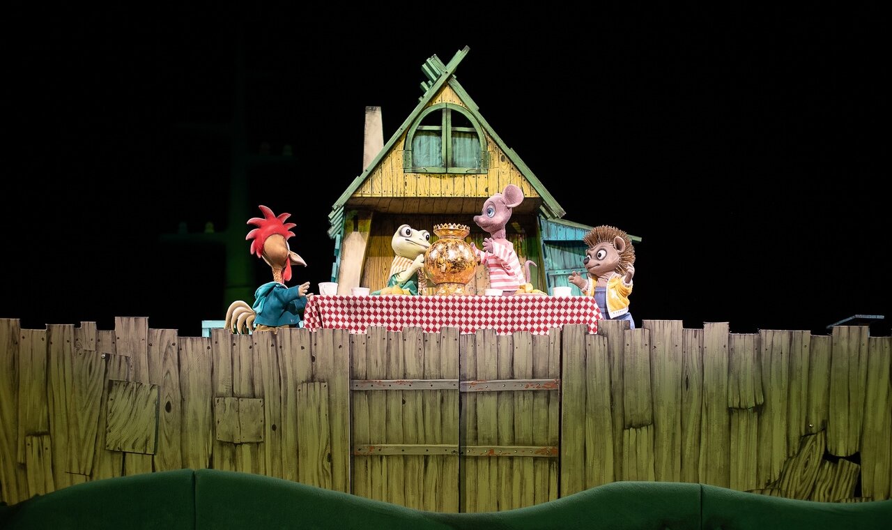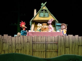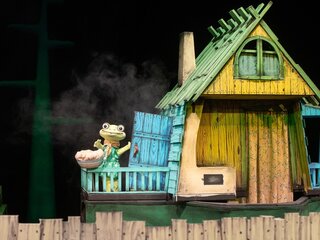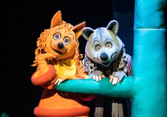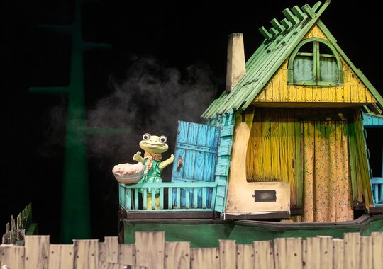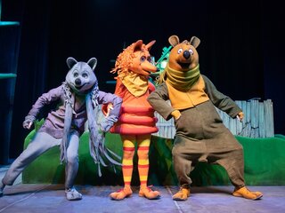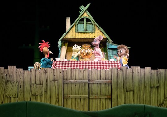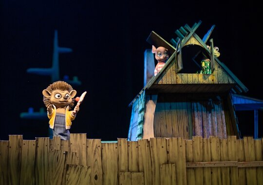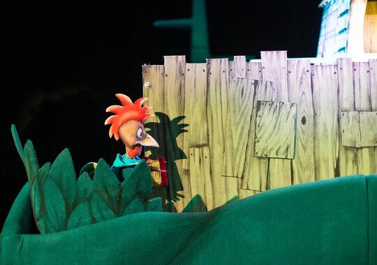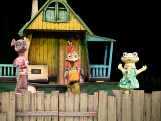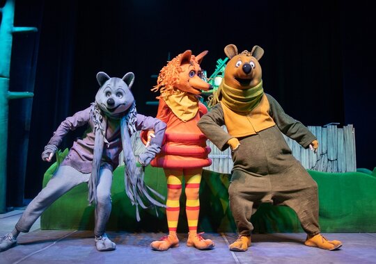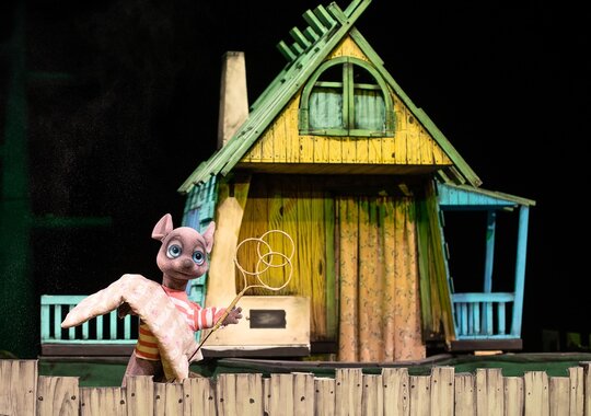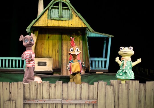 В спектакле использованы перчаточные и ростовые куклы. Артисты работают на ширме и «в живом плане».