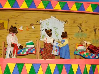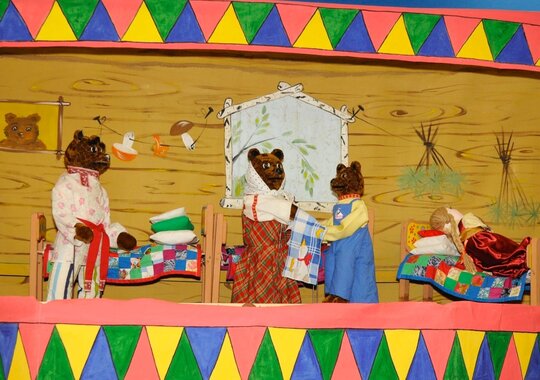 Известная сказка о приключениях Машеньки, заблудившейся в лесу и попавшей в дом к трем медведям, дополнена музыкой, песнями и чудесными рассказчиками — Сыроежкой и Мухомором.