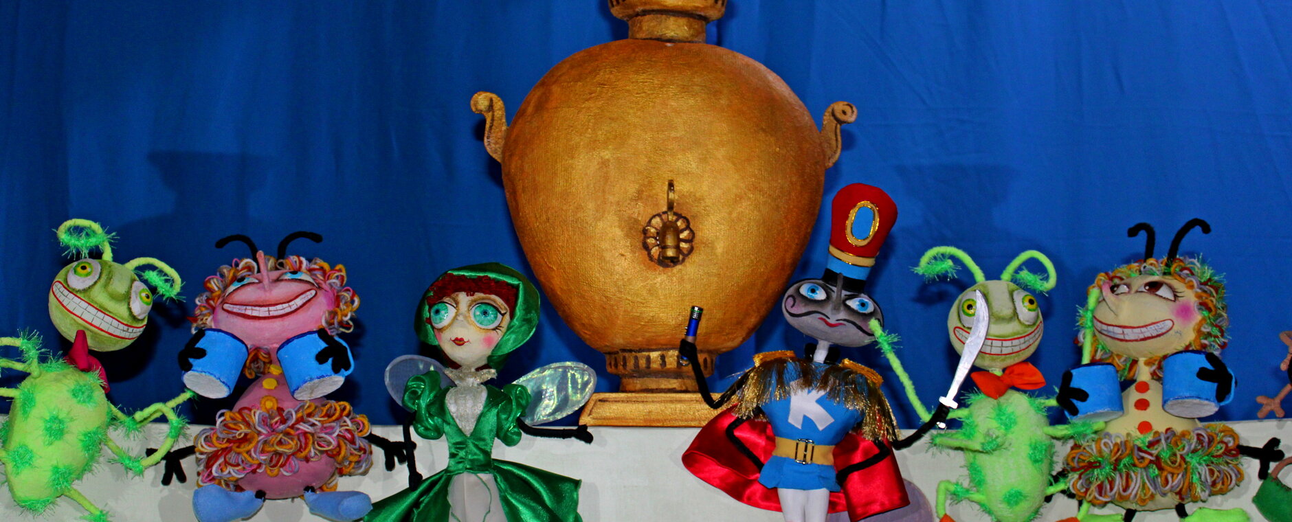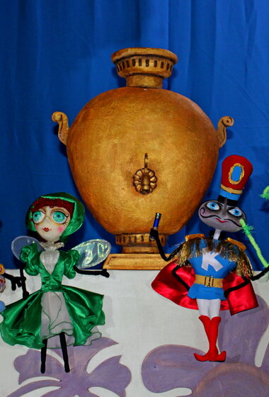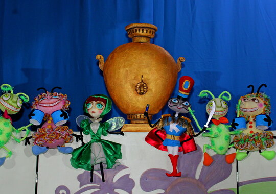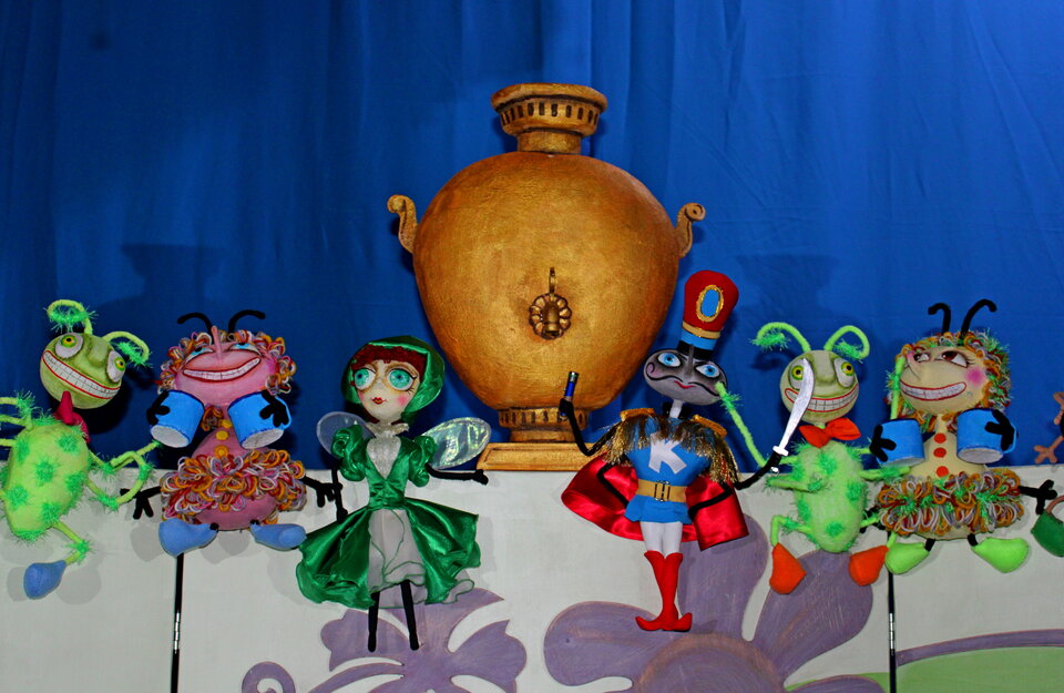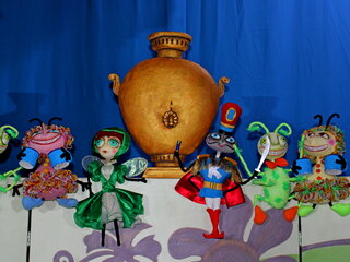Ну кому же от самых маленьких до самых взрослых и серьёзных зрителей не известна история о том, как Муха самовар купила, а тут и день рождения, и гости? Вот и в этой сказке вы обязательно встретитесь с Мухой, забавными тараканами, очаровательными бабочками, кузнечиком, который «совсем как человечек». И все гости испугаются коварного злого Паука, а Муху спасёт отважный Комарик. Но необычность спектакля в том, что покупка обычного самовара превратилась в удивительный, невероятный, единственный в мире «театр насекомых».