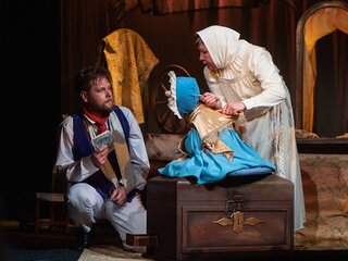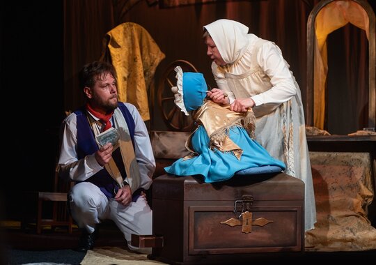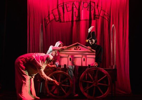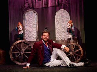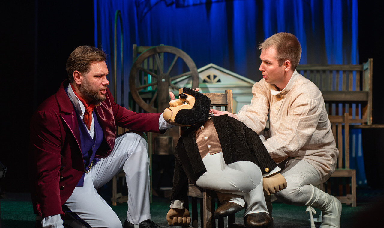 Чичиков в кукольно-драматическом спектакле образ Остапа Бендера 18 века так как «он не привык ни в чем не отступать от гражданских законов» именно по этому, его играет актёр драматического театра — Сергей Ключников. История основана на идеи относящегося исторической эпохи крепостного права на Руси. Павел Иванович Чичиков, пройдя сложную перипетию жизни, создал свой собственный крепостной театр, в котором решил поставить спектакль о своих необычайных приключениях. Поэтому общаясь с персонажами в куклах (Маниловы, Собакевич, Плюшкин, Ноздрев, Коробочка) он проявляет как сквозь призму, все человеческие пороки по отношению к человеческим ценностям, так как основная тема спектакля материальное и никогда не может быть выше духовного. То и театр Чичикова, в конце концов, перестанет быть крепостным и все актеры получат вольную.