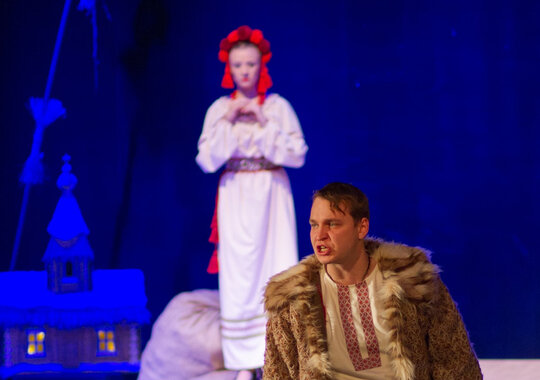 Стоило чёрту украсть с неба месяц, как всё смешалось и заволновалось в человеческом мире, сделалось непривычно и опасно темно... Много ещё произойдёт в эту ночь накануне праздника Рождества Христова. Спектакль наполнен юмором, народной музыкой, яркими костюмами и зрелищными танцевальными номерами.
