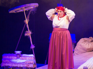 В спектакле звучат народные песни в исполнении вокального ансамбля «Губеренка» колледжа им. Мержанова при ТГМПИ им. Рахманинова, руководитель Марина Друцкая.