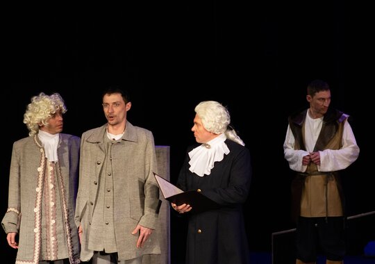 Острослов Иван Балакирев, участник любимых Государем празднеств и шутовских потех, волею судеб оказывается вовлеченным в запутанные взаимоотношения при дворе Петра I. Игры вокруг престола в спектакле представлены весело и добродушно, но не без доли шутовства: царь Петр предстаёт теряющим власть и чувствующим свою скорую кончину, светлейший Меньшиков ведет себя весело и задорно, прокурор Ягужинский ёрничает над происходящим, полуграмотные провинциальные крестьянки хозяйничают у трона императрицы Екатерины... Это зрелищная, яркая, наполненная чудесными сценами постановка, которая заставляет улыбнуться, но главное — задуматься.