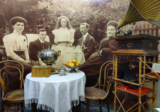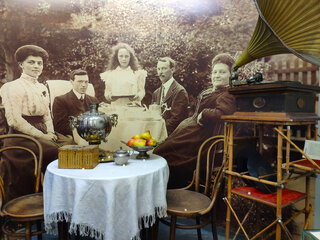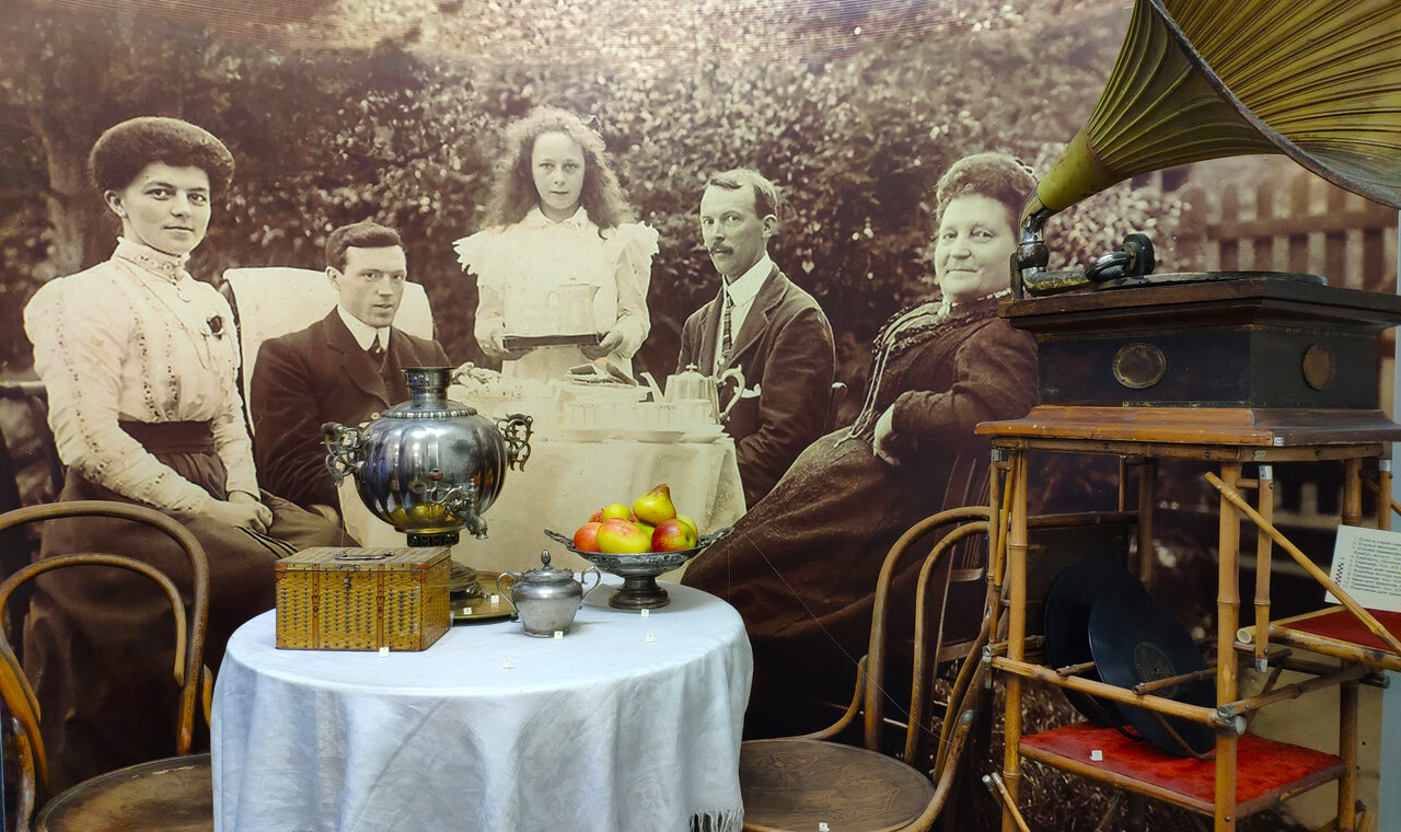 Всего на выставке представлено 486 предметов, среди которых: одежда, мебель, посуда, бытовая утварь XVIII — XX веков.