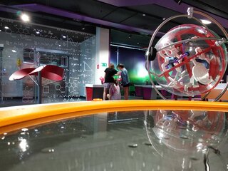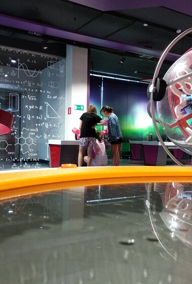 Опытные экскурсоводы расскажут и покажут, как работает гироскоп, реактивный двигатель, генератор Ван де Граафа. После экскурсии можно осмотреть все 70 экспонатов, которые находятся в экспозиции, и самостоятельно провести настоящие эксперименты с механизмами, воздушными потоками и электричеством.