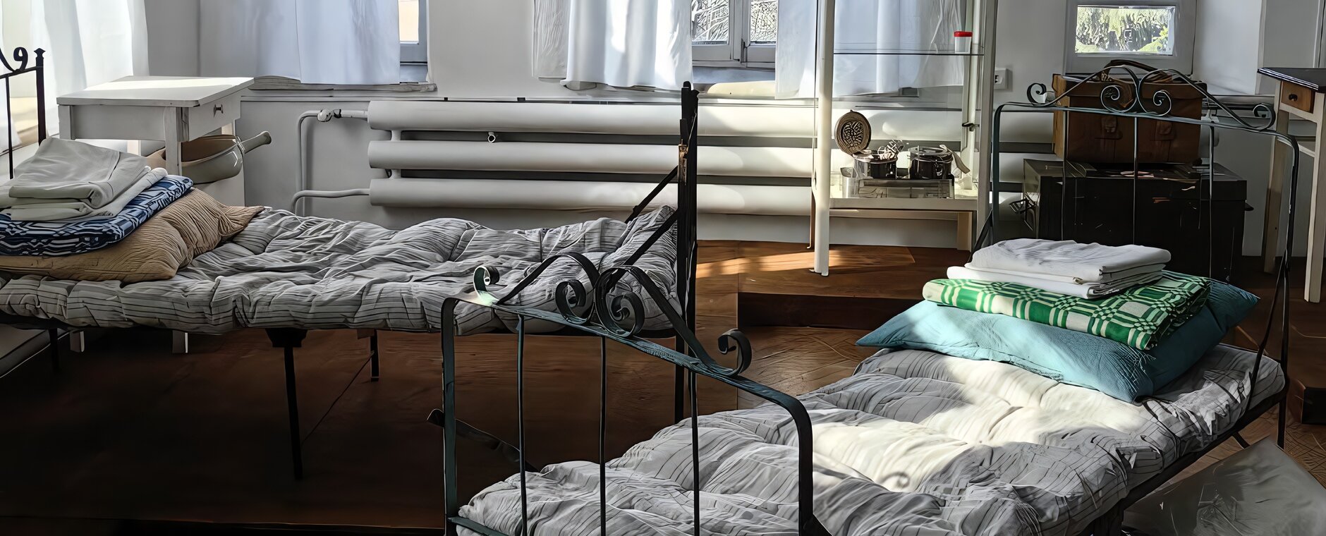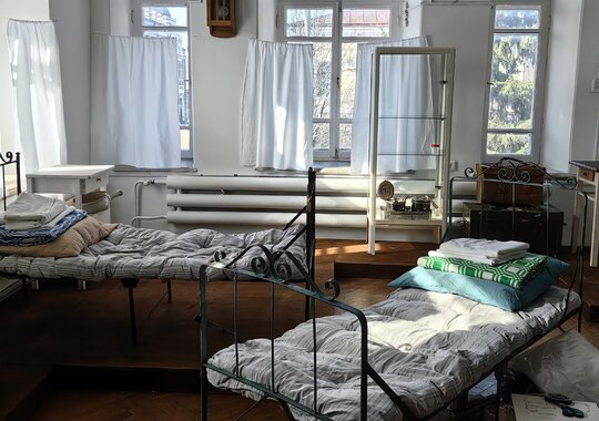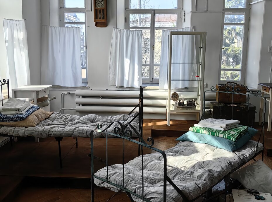 В одном из залов воссоздана атмосфера эвакуационного госпиталя. Посетители смогут увидеть палату для раненых, где врачи и медсестры круглосуточно боролись за жизни солдат эвакуированных в Томск, а экскурсоводы расскажут сколько было госпиталей и где они размещались.