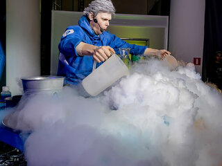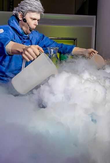 В «Лаборатории подарков» случился сумасшедший переполох. Профессор Файер и профессор Сноу повздорили. Они так увлеклись, споря о том, какие подарки круче: «с огоньком» или «леденящие душу», что вдруг бах бабах. Что придумали горе-ученые, чтобы спасти лабораторию и подарки для именинника? Узнаете, посмотрев наш научный спектакль!