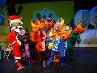 В этот Новый год котята решили утроить для всех своих друзей настоящий новогодний шоу-концерт! Ваши дети не только встретятся со своими самым любимым героями, но ещё и примут участие в новогоднем танцевальном флэш-мобе, повеселятся под любимые песни из мультсериала и увидят лучшие шоу номера в исполнении семейства котят, их друзей и Кота Мороза. Спектакль не только развлекательный, но и поучительный! Котята поймут что такое семейные ценности и взаимопомощь.