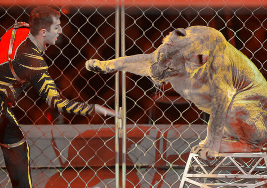 В программе большая группа дрессированных животных — аргентинские попугаи, носухи, индийские дикобразы, дрессированный конь Амур, лемуры, озорные еноты, пушистые кошечки топ мяу и главное Золото нашей программы — грандиозный аттракцион африканских львиц и амурских тигров с бесстрашным дрессировщиком!