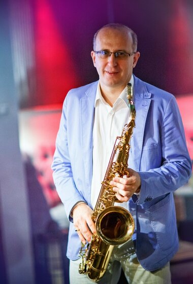 Играет один из лучших саксофонистов города — Александр Красоткин.