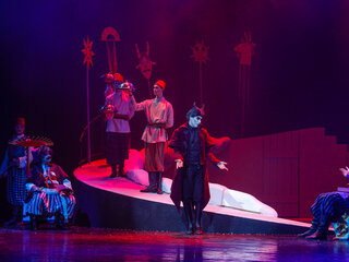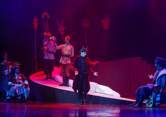 Красавица Оксана обещает выйти замуж за того, кто принесет ей в подарок черевички, да не простые, а те самые, которые носит сама императрица Екатерина II. И за дело берется возлюбленный Оксаны, смелый и честный кузнец Вакула. Но путь до Санкт-Петербурга не близок и немало приключений ждет нашего героя! Рождественская история дополнится параллельными сюжетными ходами, новыми персонажами, обогатится мистическими сценами, искромётным юмором, потрясающими костюмами, эффектными декорациями, акробатическими трюками, великолепными танцами, авторской музыкой, написанной специально для ТБДТ и песнями, которые запоминаются с первых строк и надолго подарят зрителям ТБДТ праздничное настроение! Здесь есть на что посмотреть, над чем посмеяться, а иногда и задуматься.